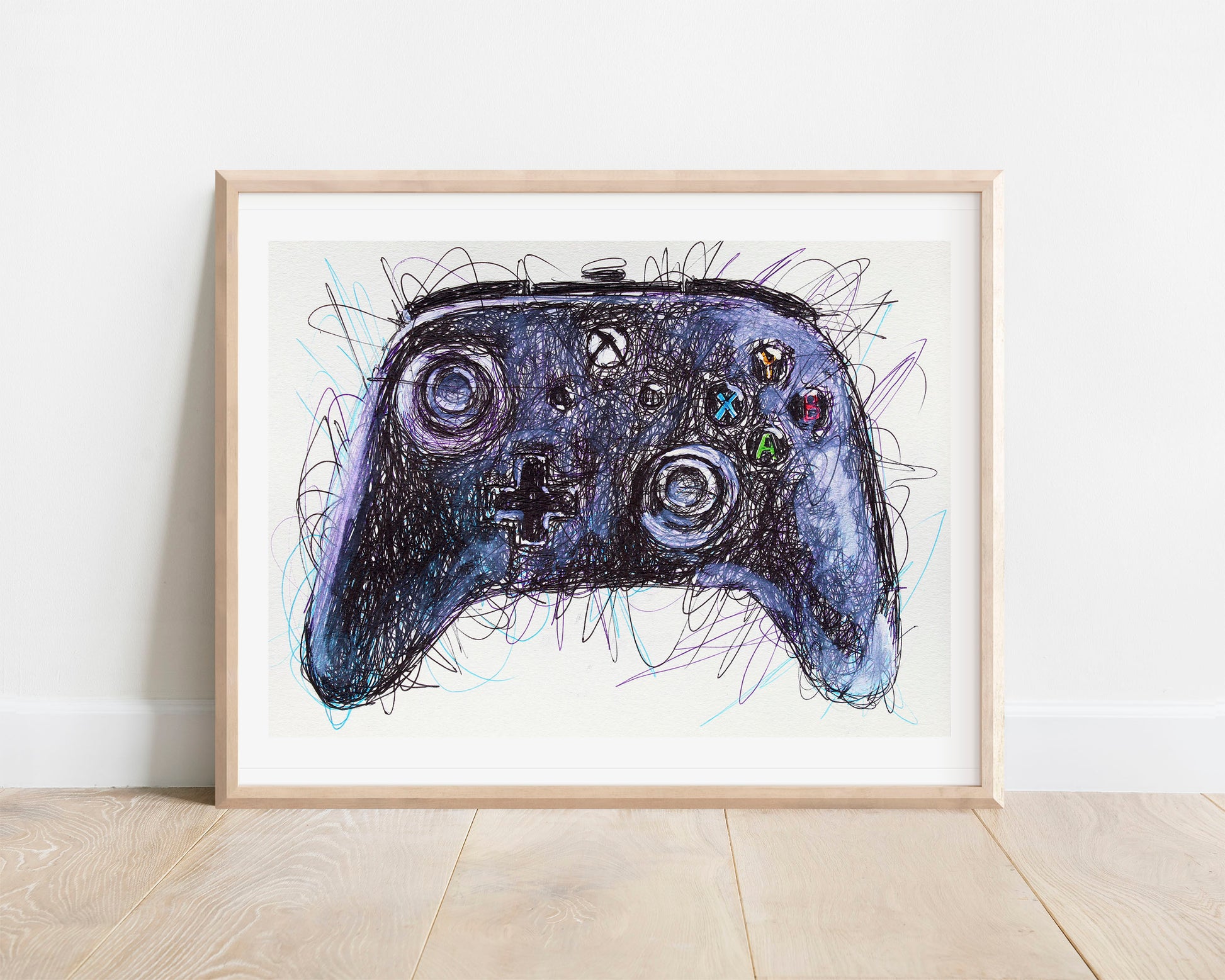 Xbox Controller Ballpoint Pen Scribble Art Print